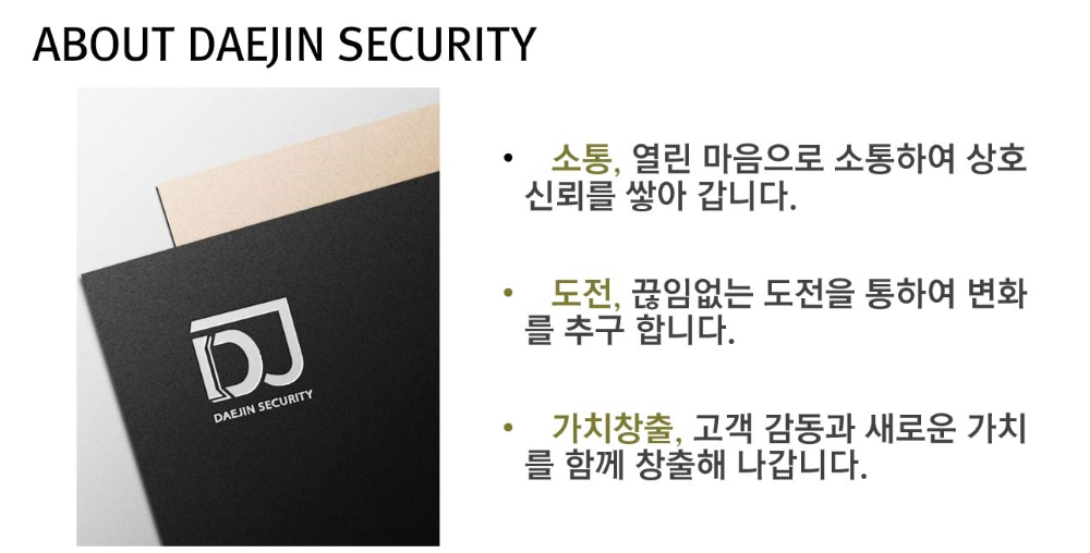 ÁÖ½Äȸ»ç´ëÁø½ÃÅ¥¸®Æ¼¸¦ ¼Ò°³ÇÕ´Ï´Ù.
